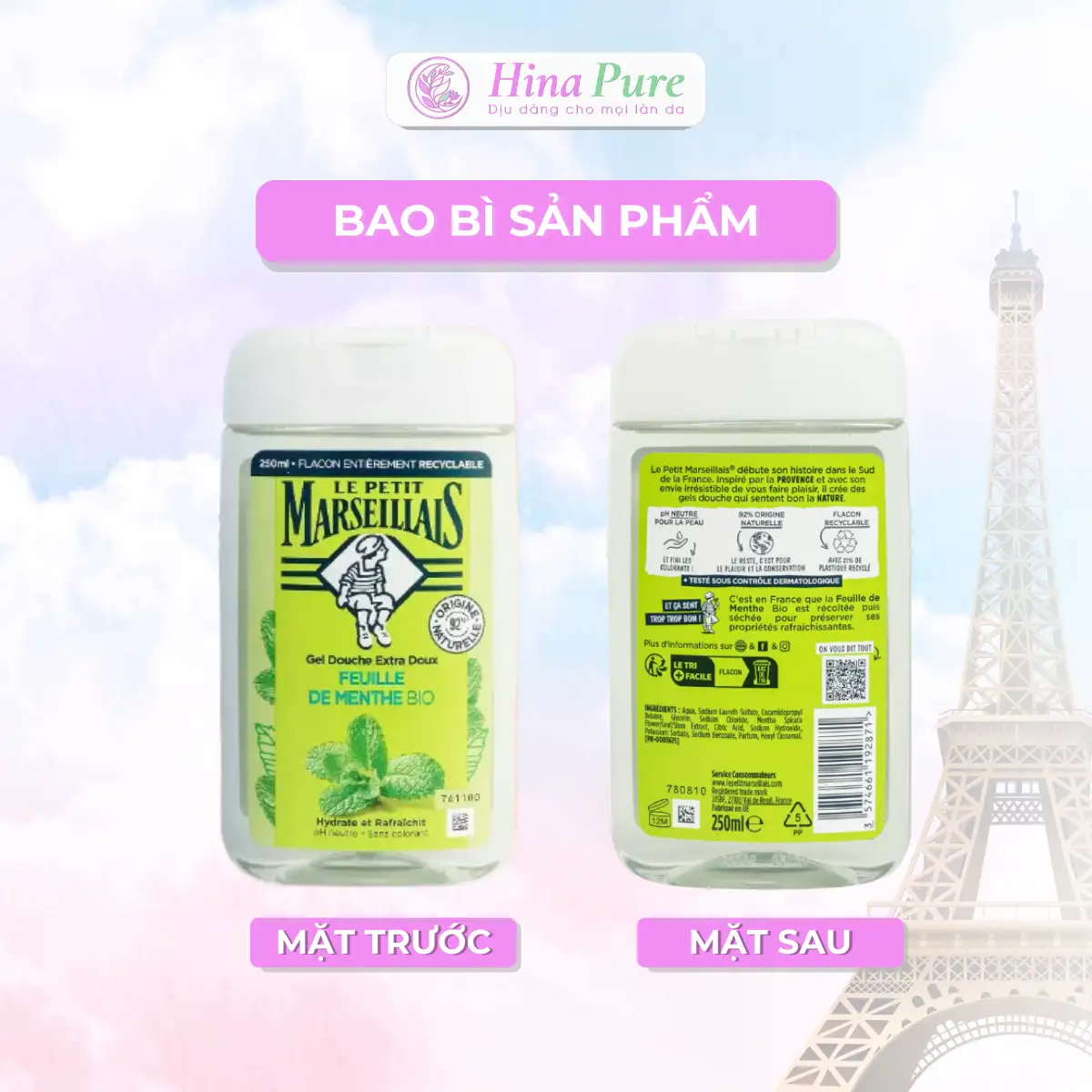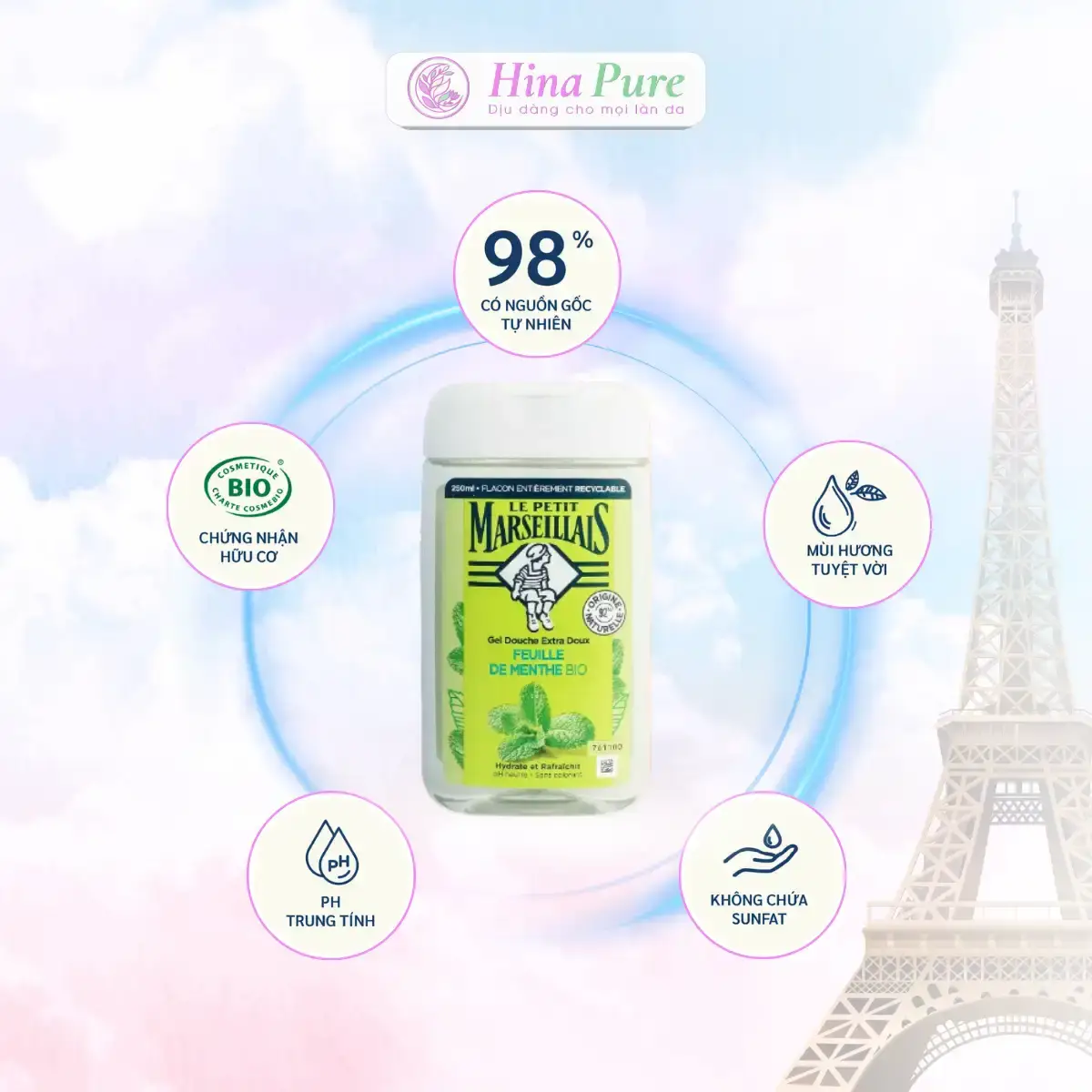 Sữa Tắm Pháp Le Petit Marseillais Dịu Nhẹ Chiết Xuất Lá Bạc Hà Hữu Cơ