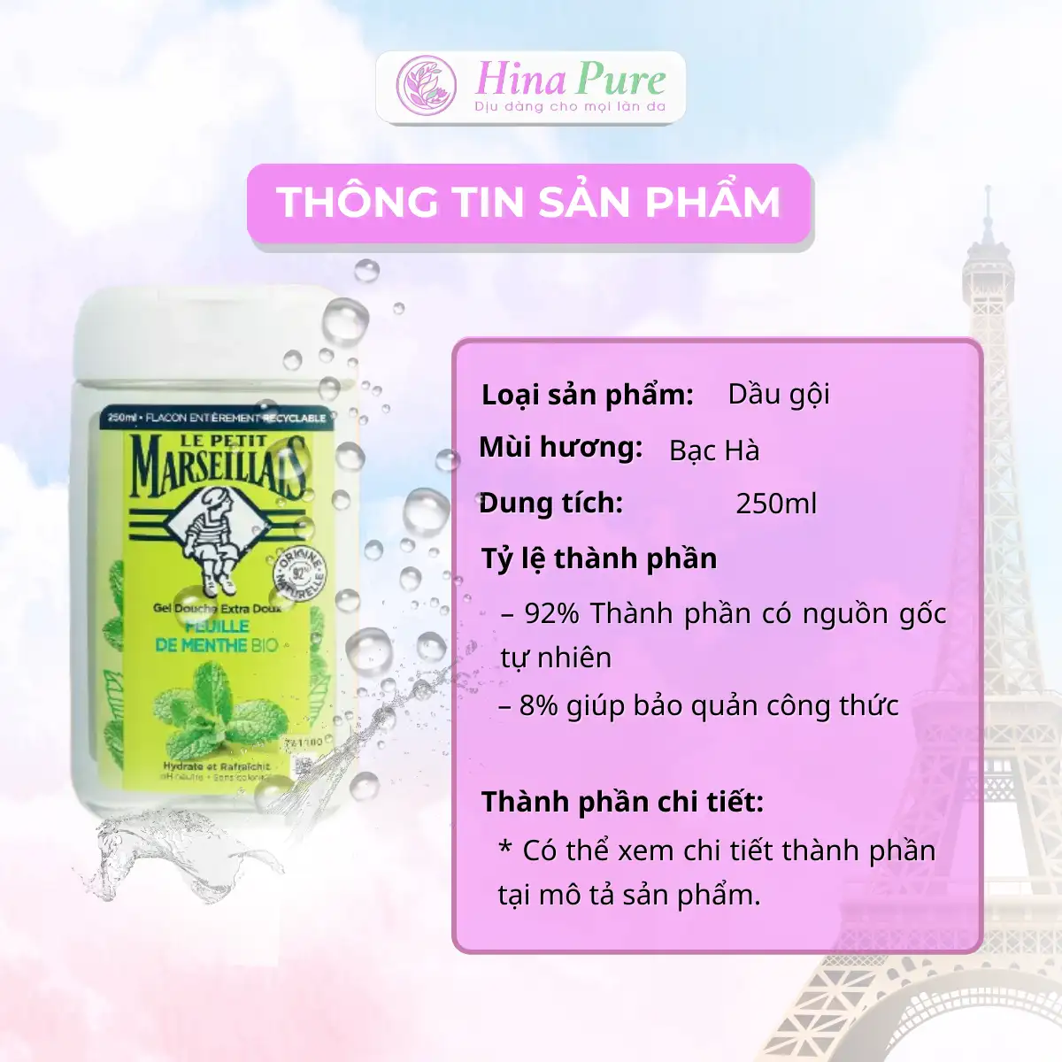 – 92% thành phần có nguồn gốc tự nhiên
