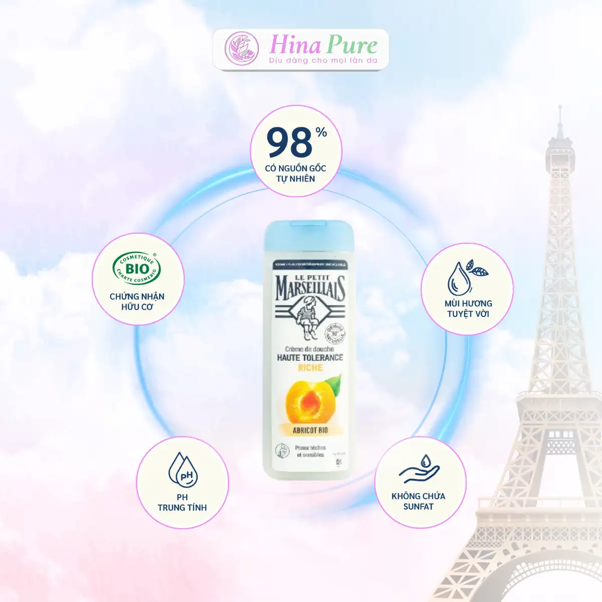 Sữa Tắm Pháp Le petit Marseillais Làm Mềm Da Siêu dịu nhẹ Quả Mơ